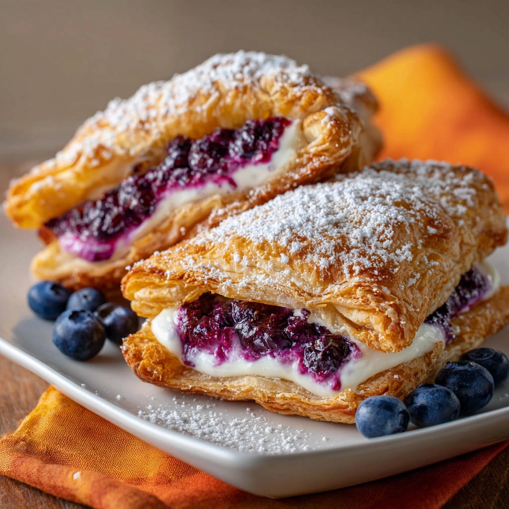 Blätterteig-Taschen mit Heidelbeeren und Frischkäse: Das Rezept für garantiert knusprigen Genuss!