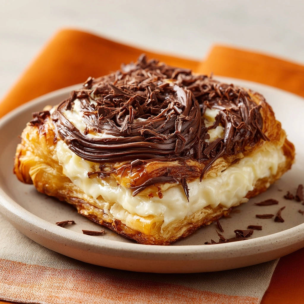 Stell dir vor: Du beißt in ein knuspriges, goldbraun gebackenes Blätterteig-Teilchen, und deine Zunge trifft auf eine himmlisch cremige Vanillefüllung, gekrönt von intensiver Schokolade. Ein Traum, oder?