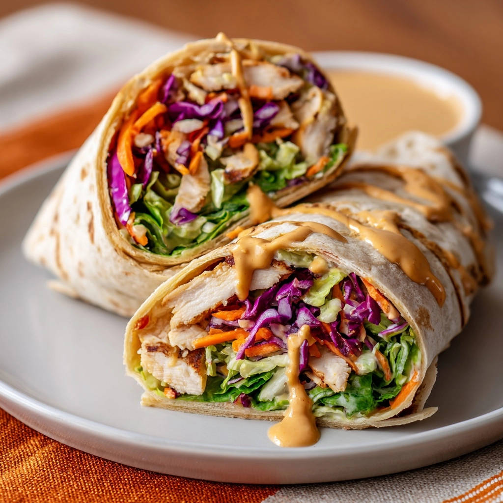 Mit meinen bewährten Tricks gehört der matschige Wrap der Vergangenheit an. Freuen Sie sich auf ein Gericht, das mit seiner knackigen Textur, dem saftigen Hähnchen und der unwiderstehlichen Erdnuss-Soße überzeugt.