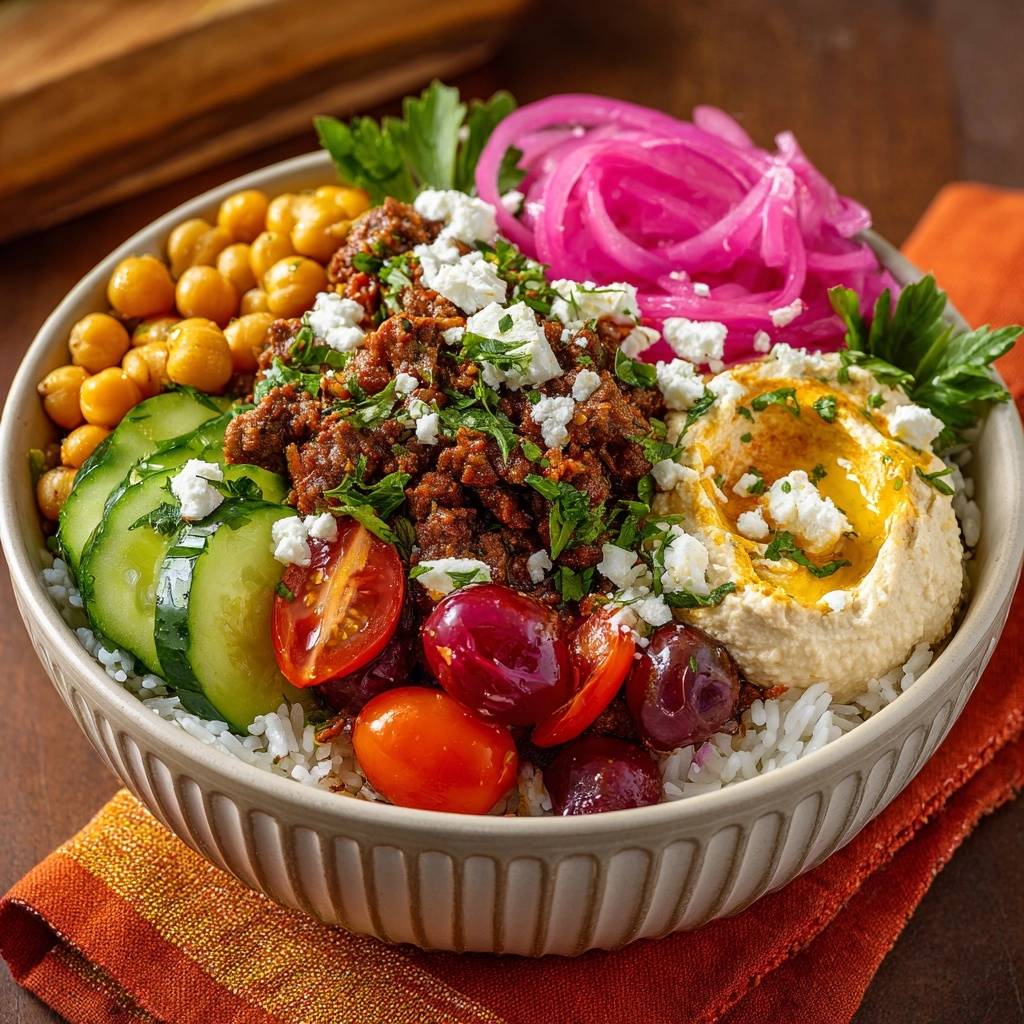 Stell dir vor, du nimmst den ersten Bissen von dieser Bunter Mittelmeer-Hack-Bowl. Das Hackfleisch ist saftig und knusprig zugleich, umhüllt von cremigem Hummus und knackigem Gemüse. Der Duft von Kreuzkümmel und Paprika zieht durch die Küche, und alles passt perfekt zusammen.