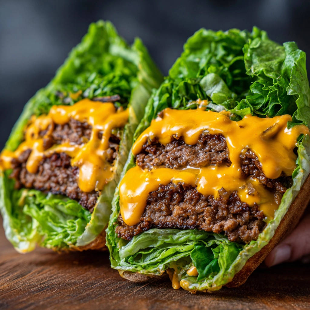 - Anrichten und Genießen: Legt nun je zwei der frisch gebratenen, saftigen Smash-Patties in die vorbereiteten Salatblatt-Taschen. Gießt die warme, cremige Käsesauce großzügig über die Patties. Serviert den Burger im Salatblatt sofort, solange alles noch heiß und die Sauce schön flüssig ist.