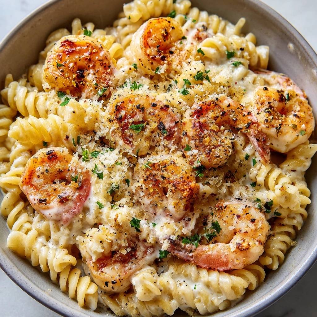 Cremige Fusilli mit knusprigen Garnelen – Rezept