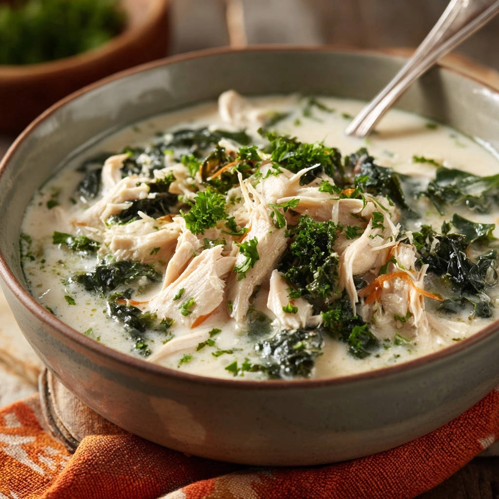 Diese Suppe vereint herzhaftes Hähnchen, nährstoffreichen Grünkohl und eine unwiderstehlich cremige Kokosmilchbasis zu einem wahren Wohlfühlessen.