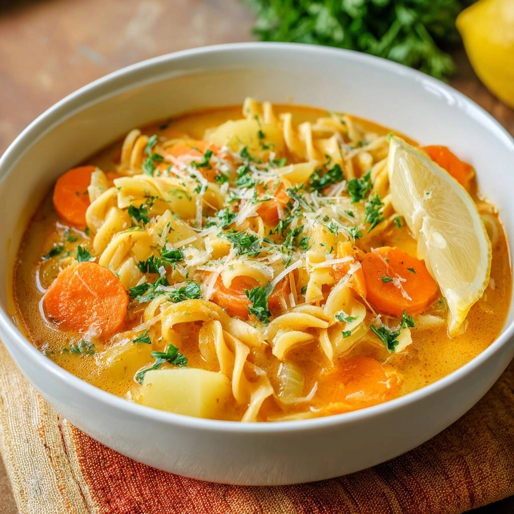 Cremige Karotten-Kartoffel-Nudelsuppe – Rezept