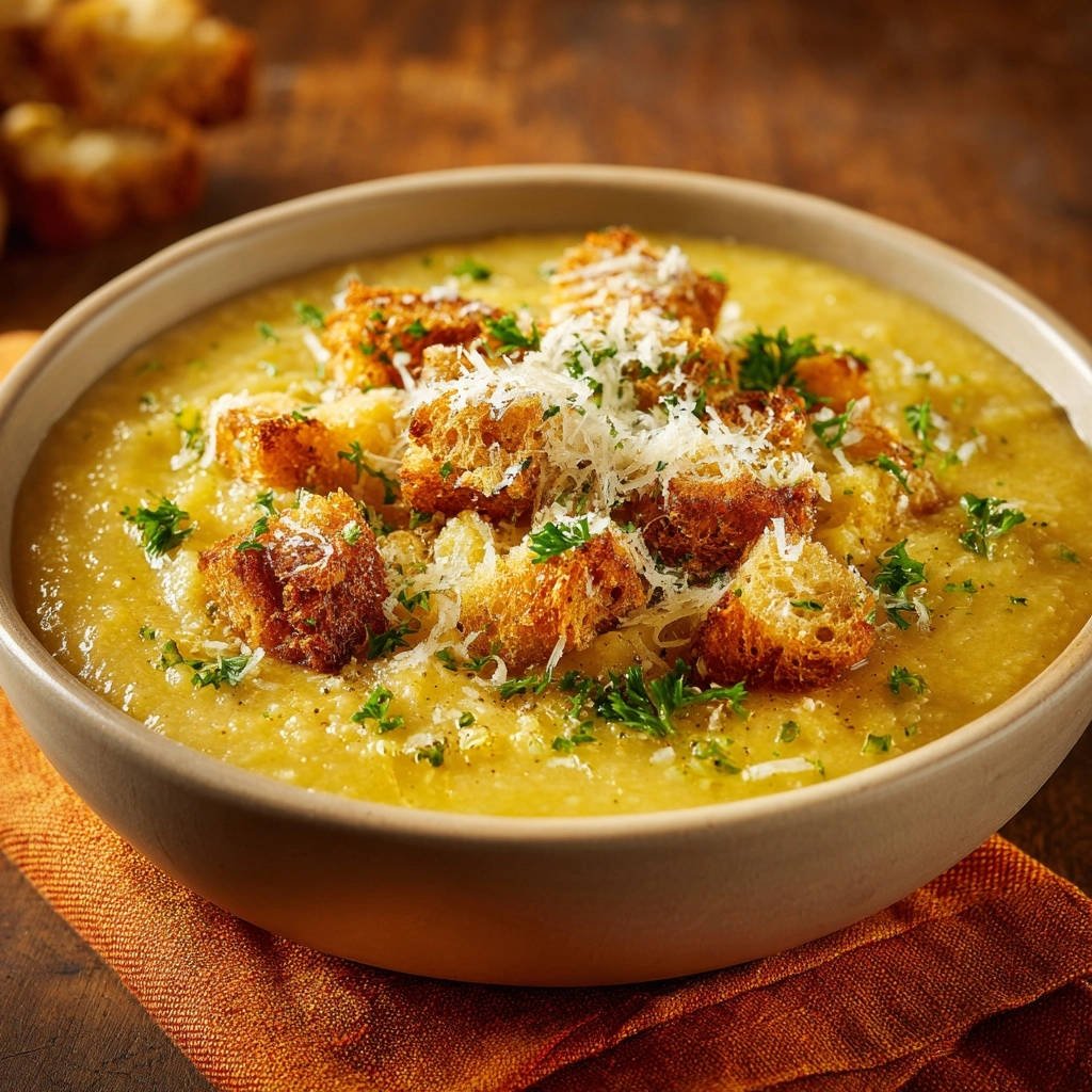 Diese Cremige Kartoffel-Käse-Suppe mit Knusper-Croutons ist nicht einfach nur eine Suppe; sie ist ein Versprechen auf unvergessliche Genussmomente.
