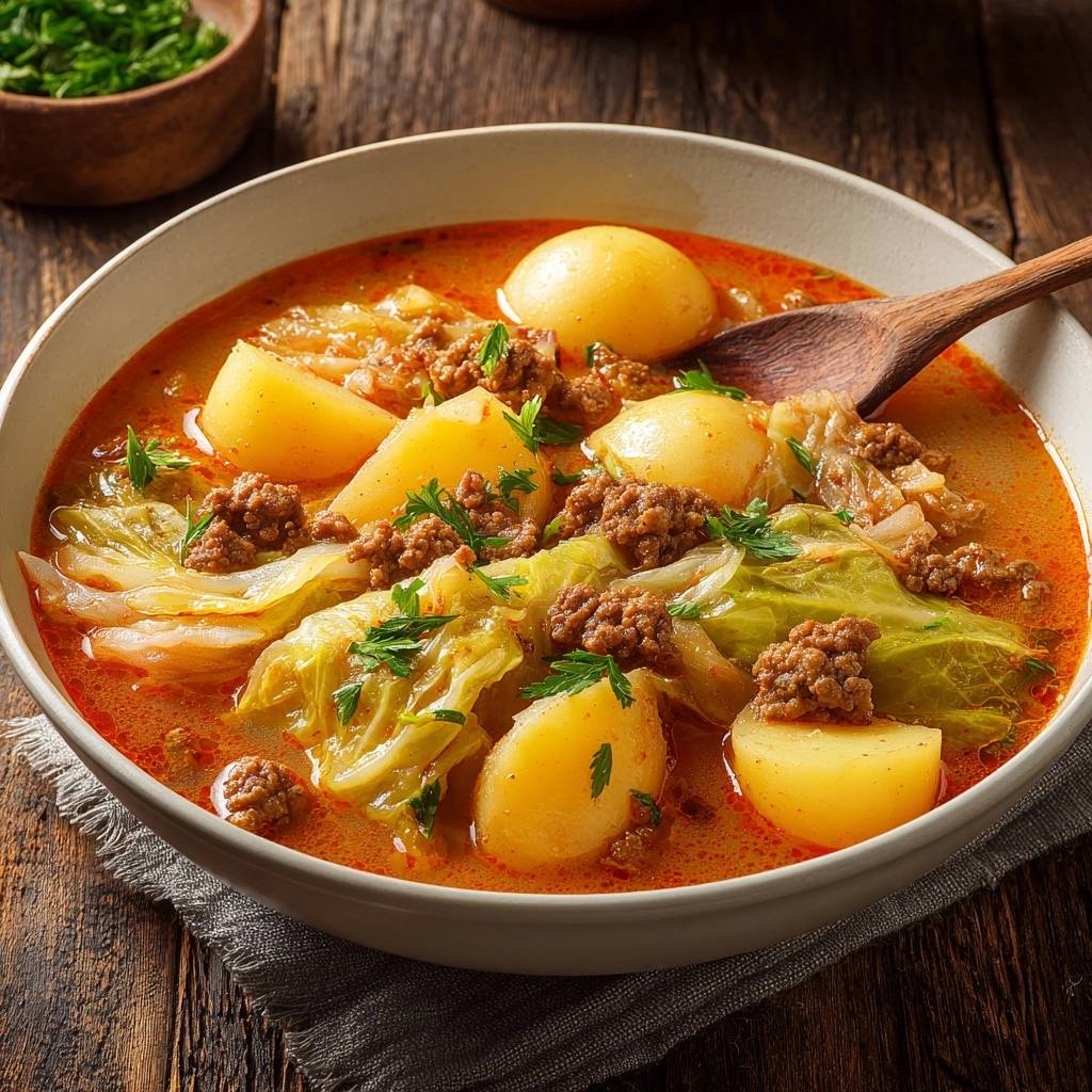 Cremige Kraut-Hack-Suppe mit Kartoffeln (Keine wässrige Soße mehr!)