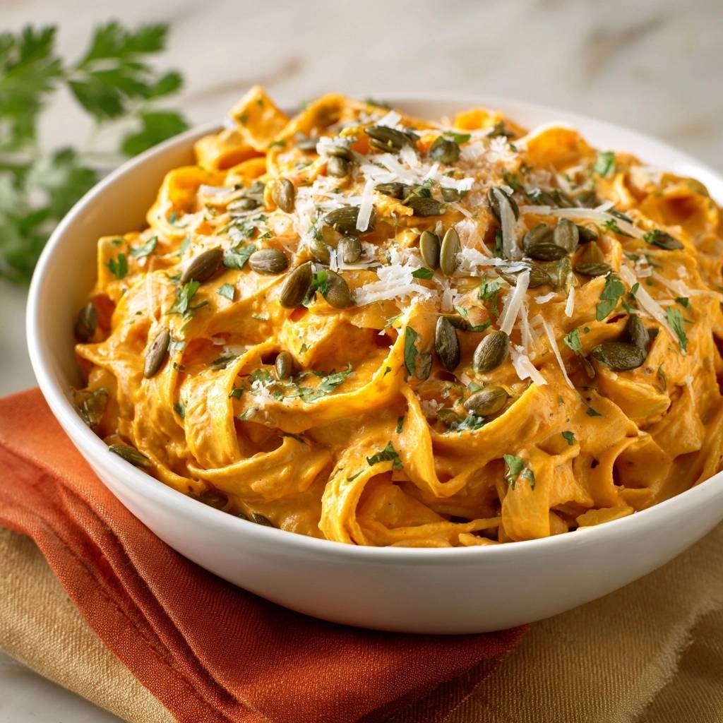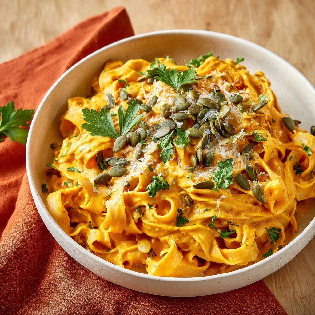 Cremige Kürbis-Tagliatelle mit Parmesan & Kürbiskernen
