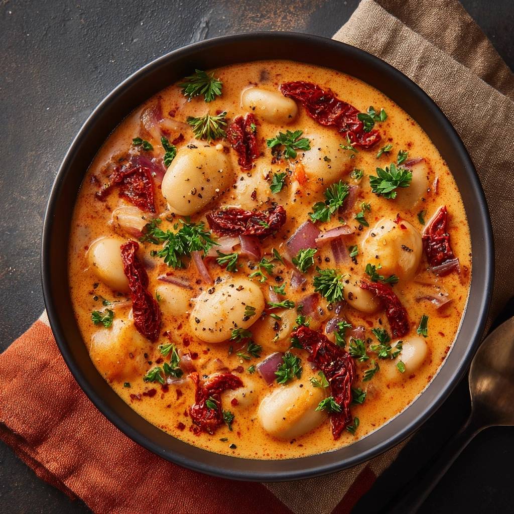 Ich koch das wöchentlich. Mit Sahne wird’s vegetarisch-cremig, vegan easy anpassbar. Der Pürier-Trick ist Gold wert. Er macht cremige Riesenbohnen mit getrockneten Tomaten zum Hit. Lass uns loslegen.