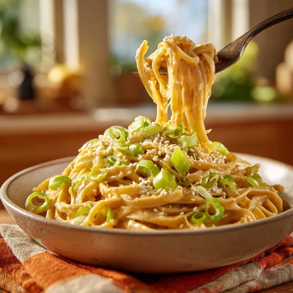 Cremige Sesamnudeln mit Frühlingszwiebeln: Perfekt haftende Soße!