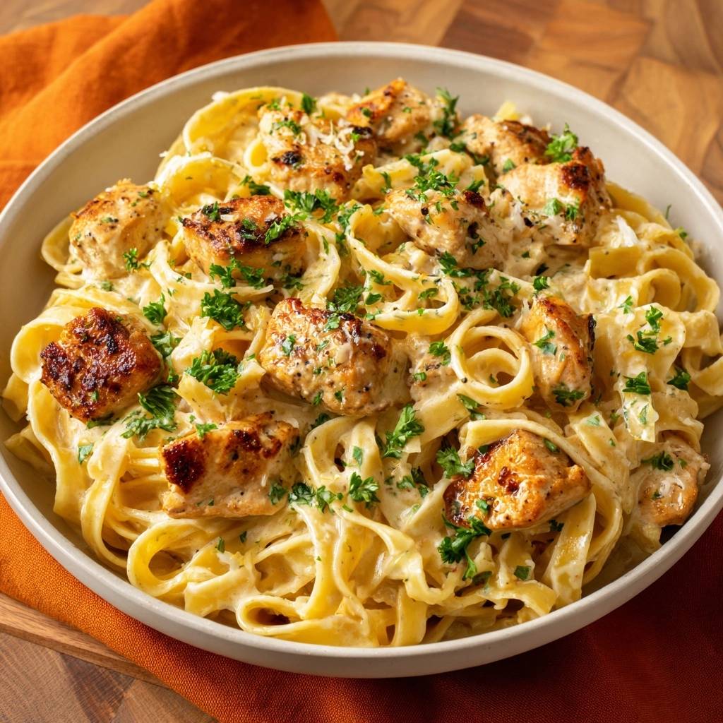Cremige Tagliatelle mit Goldbraunem Hähnchen