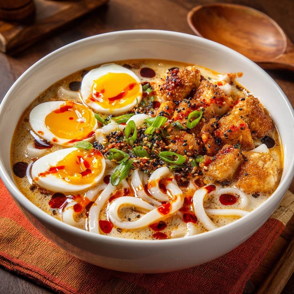Stell dir vor, du tauchst deinen Löffel in eine dampfende Schüssel, die so cremig ist, dass sie fast an eine Umarmung erinnert. Der erste Schluck der Brühe ist eine Explosion aus nussigem Sesam und würzigem Miso, gefolgt vom perfekten Biss.