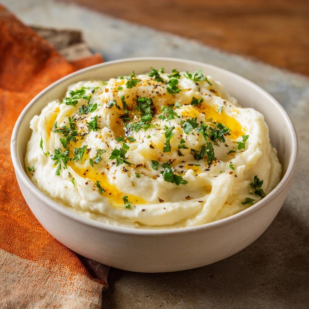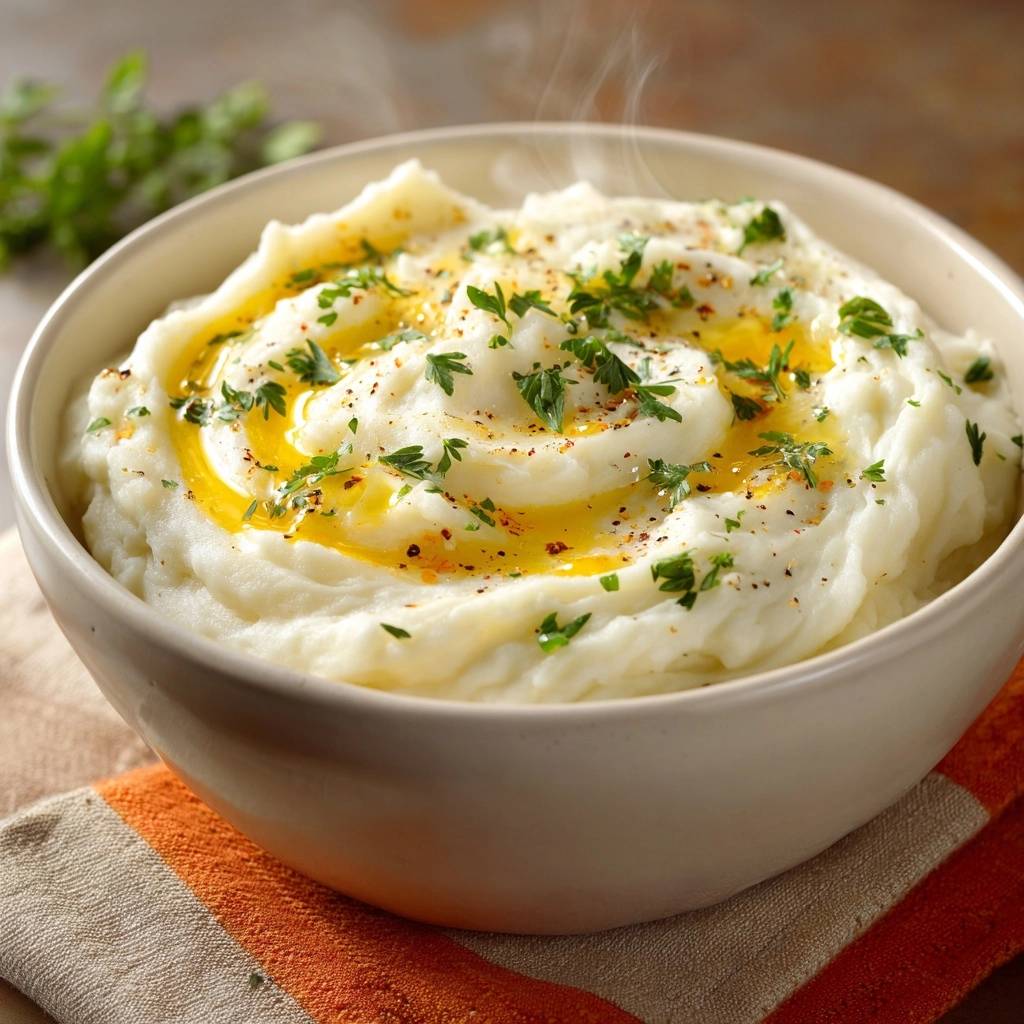 Stell dir vor, du löffelst die erste Portion cremigen Kartoffelbrei in den Mund. Die Textur ist samten-glatt, fluffig wie eine Wolke, und der Duft von frischer Petersilie mischt sich mit dem nussigen Aroma des Olivenöls. Kein einziger Klumpen stört den Genuss.