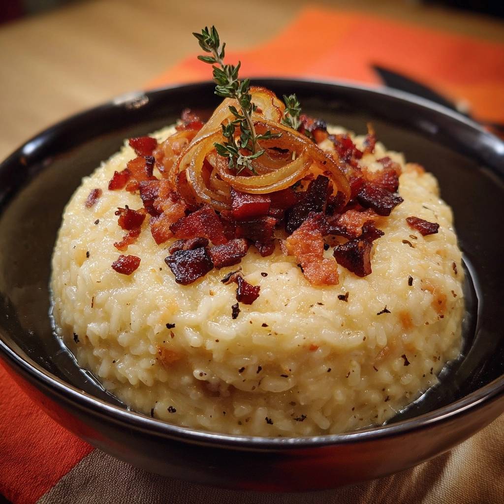 Cremiges Risotto mit knusprigem Speck & karamellisierten Zwiebeln