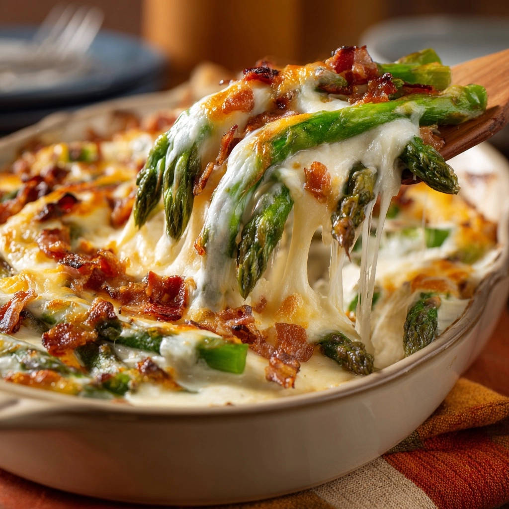 Cremiges Spargel-Käse-Gratin mit krossem Bacon