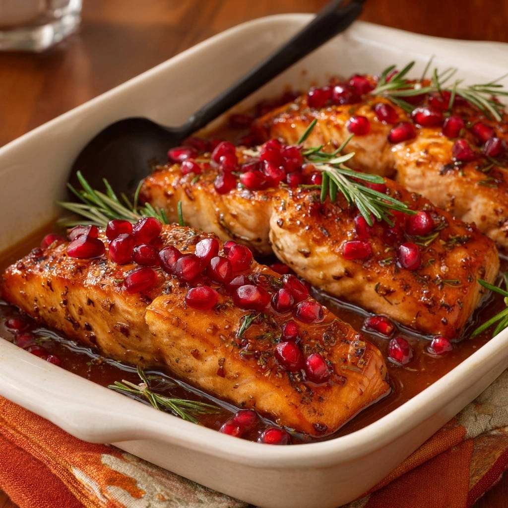 Festlicher Ofenlachs mit Granatapfel-Rosmarin-Glasur