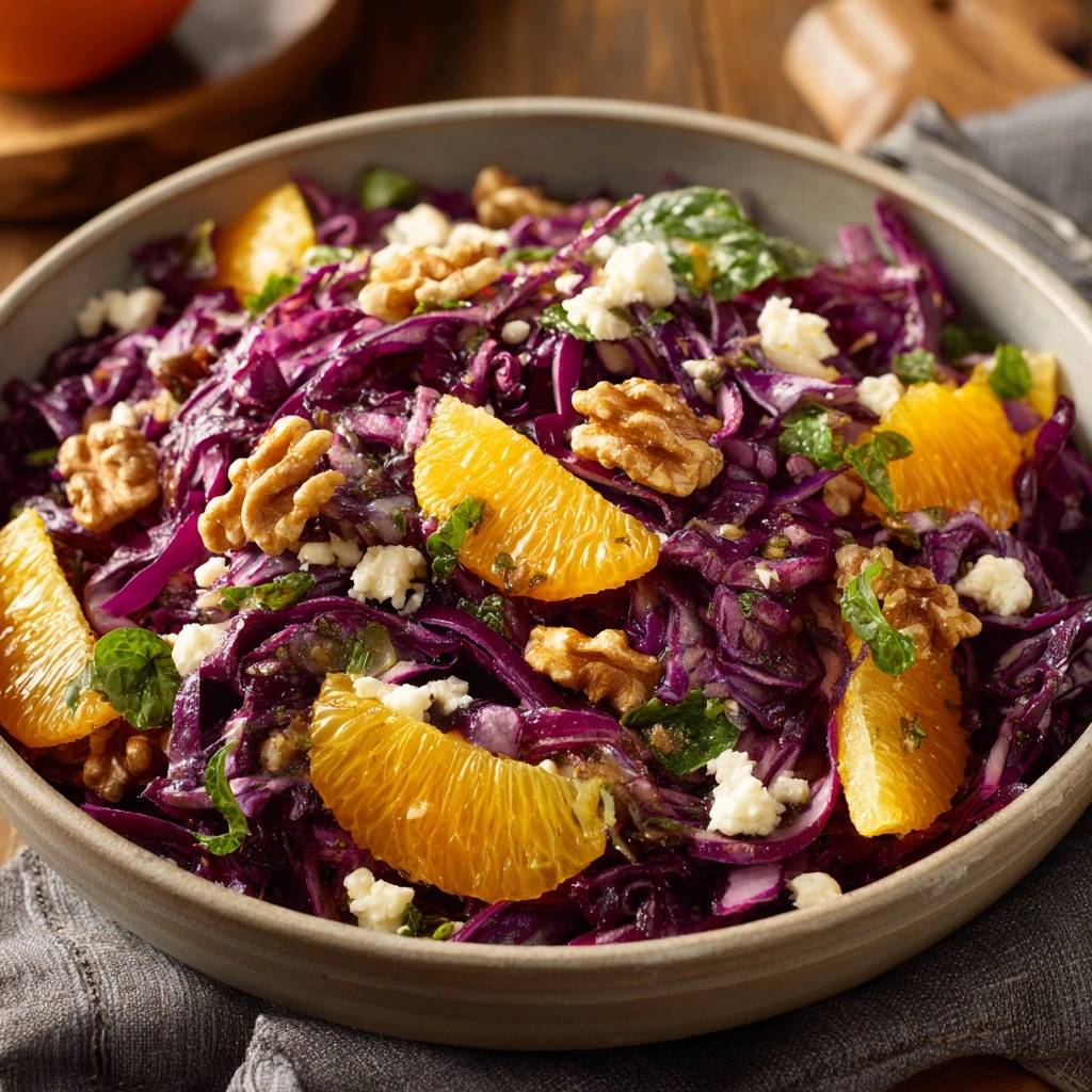 Dieser Salat ist ein echtes Kraftpaket für dein Immunsystem, da er vollgepackt ist mit Vitamin C aus den Orangen und dem Kohl. Die Walnüsse liefern wertvolle Omega-3-Fettsäuren, die nicht nur gesund sind, sondern auch für einen tollen Biss sorgen.