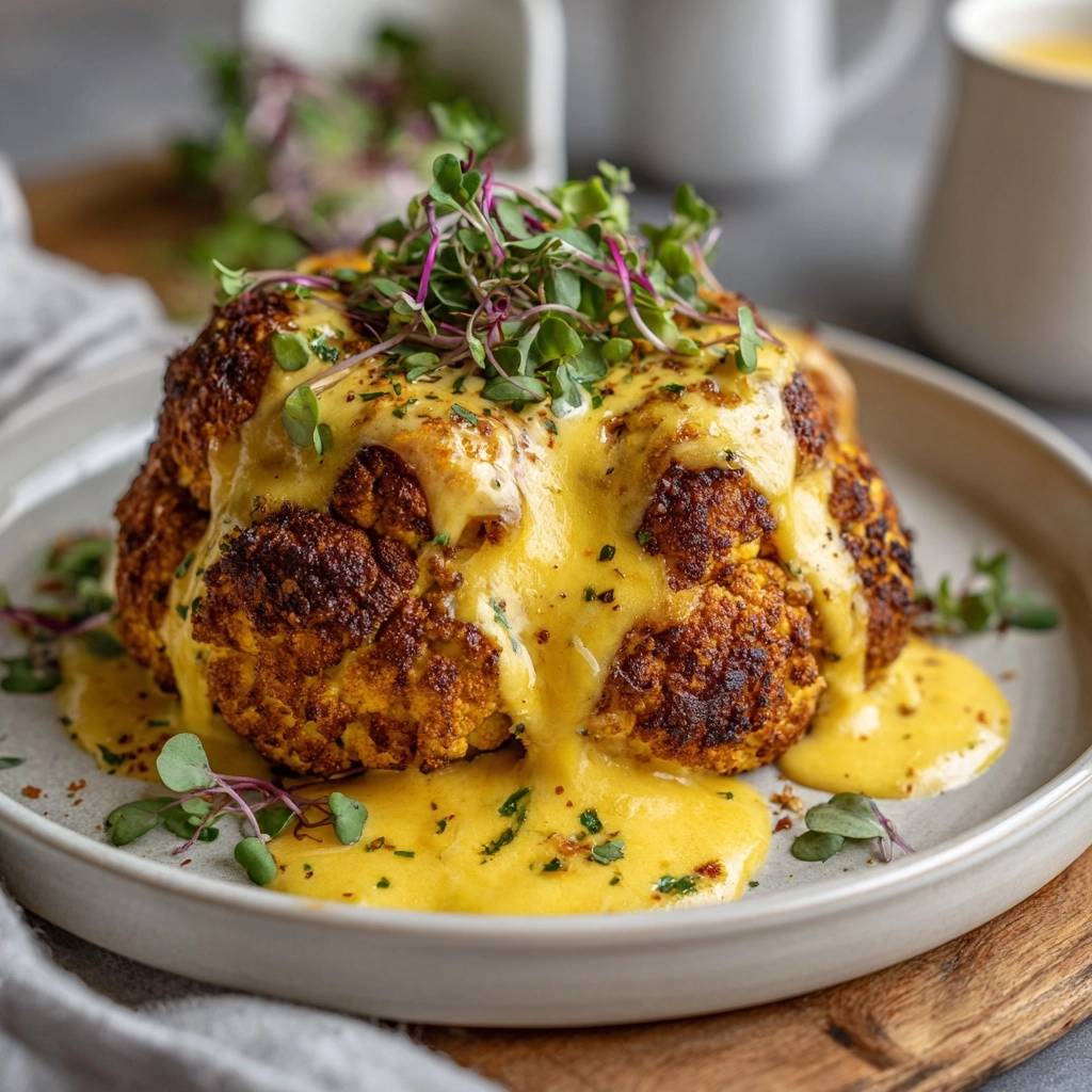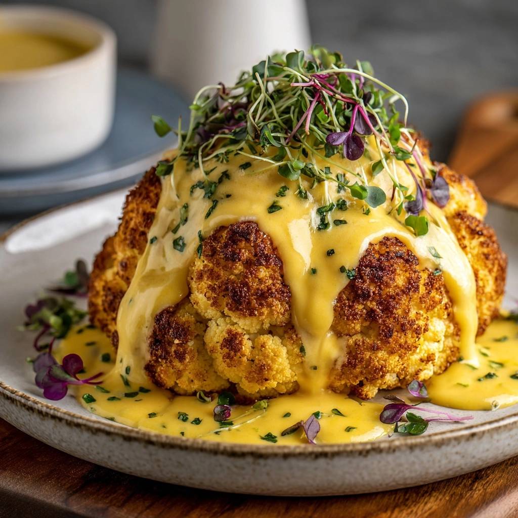 Ganzer gerösteter Blumenkohl mit Käsesauce