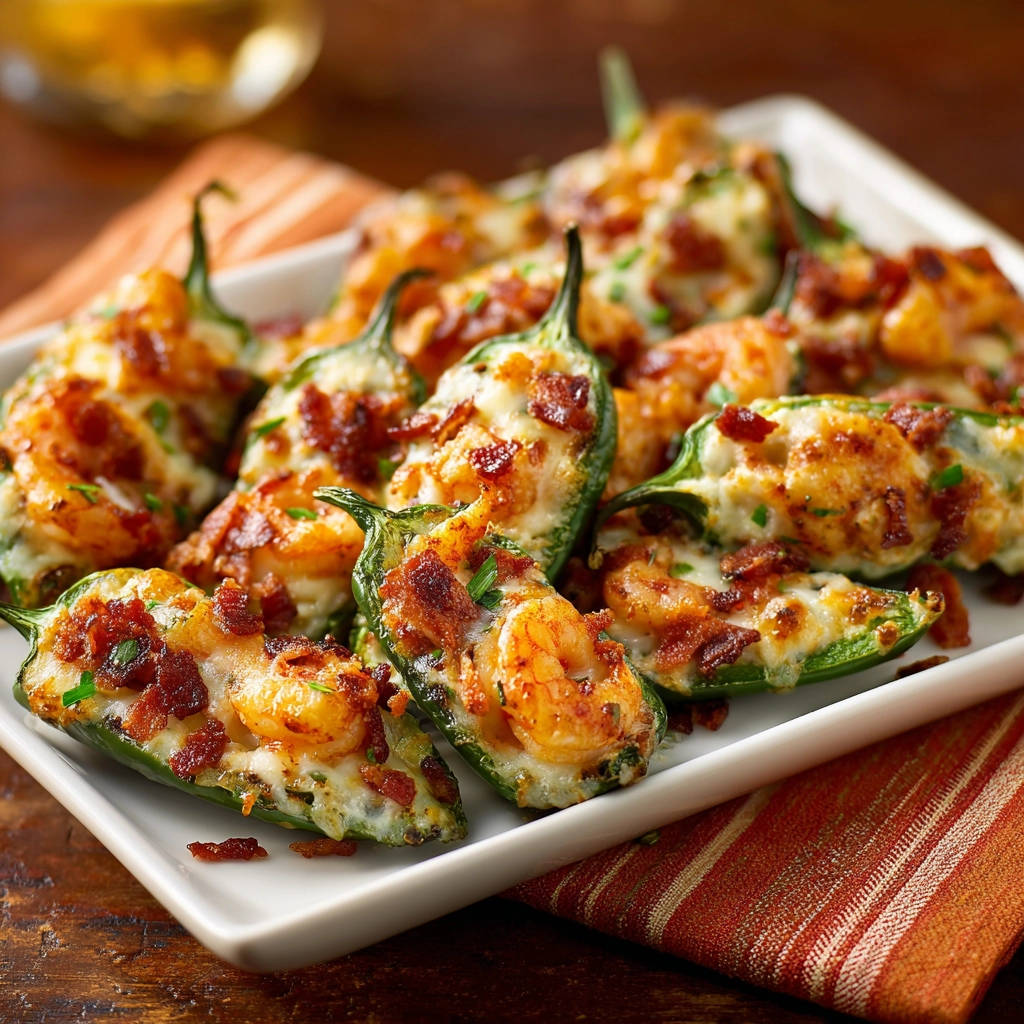 Voilà! Deine perfekten, nicht zu scharfen Gefüllten Jalapeños mit Garnelen und Speck sind fertig zum Genießen.