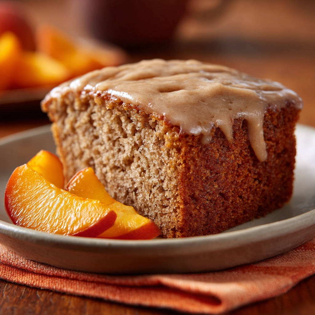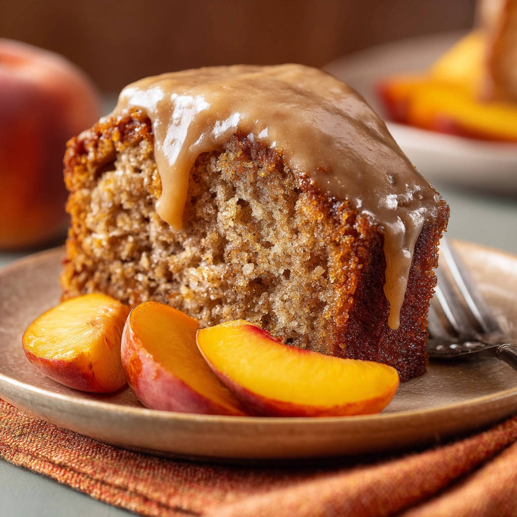 Gewürzkuchen mit Karamellglasur und Pfirsichen