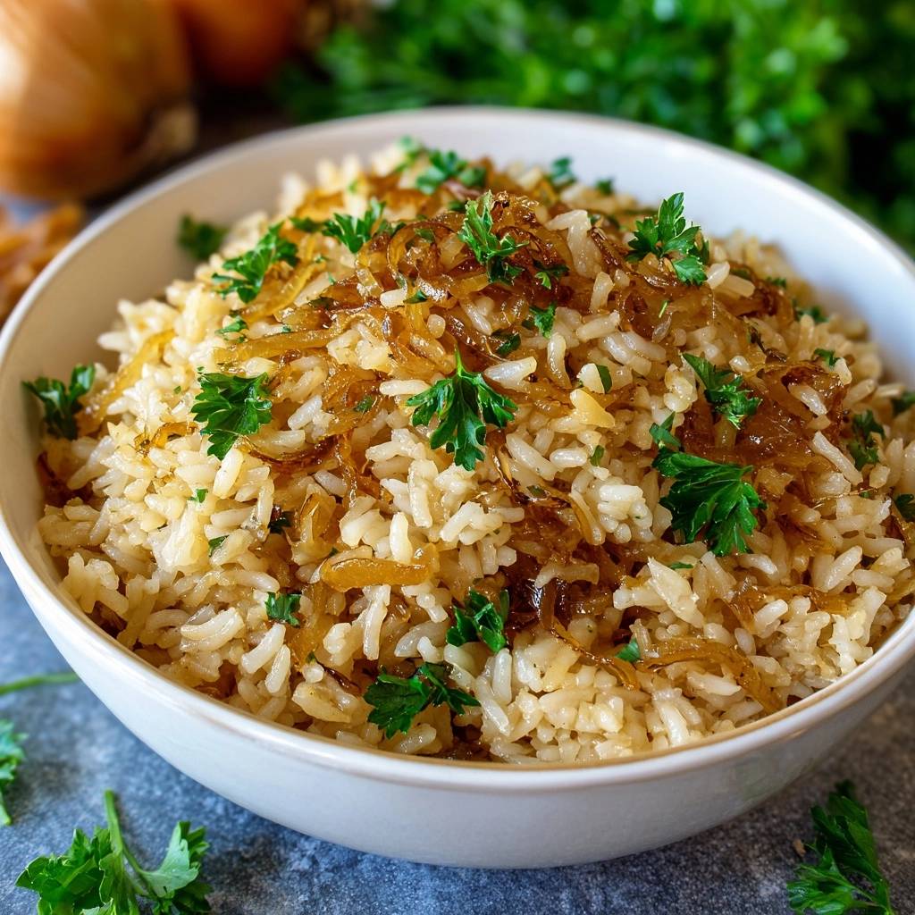 - Alles vermengen: Reis mit den karamellisierten Zwiebeln mischen, mit Petersilie bestreuen. Fertig – fluffig, aromatisch und unwiderstehlich!
