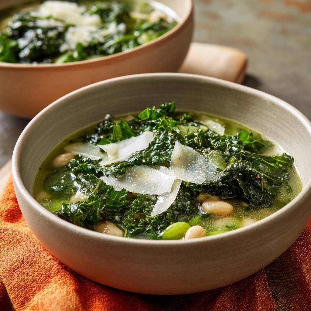 - Trick gegen zähes Kale: Blätter mit Salz und Olivenöl 2-3 Minuten massieren, bis sie weich und dunkel sind. Suppe teilweise pürieren für Cremigkeit bei knackiger Textur.