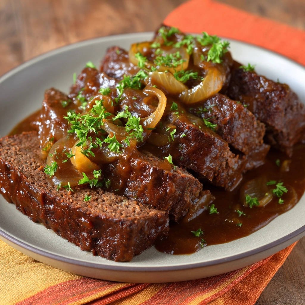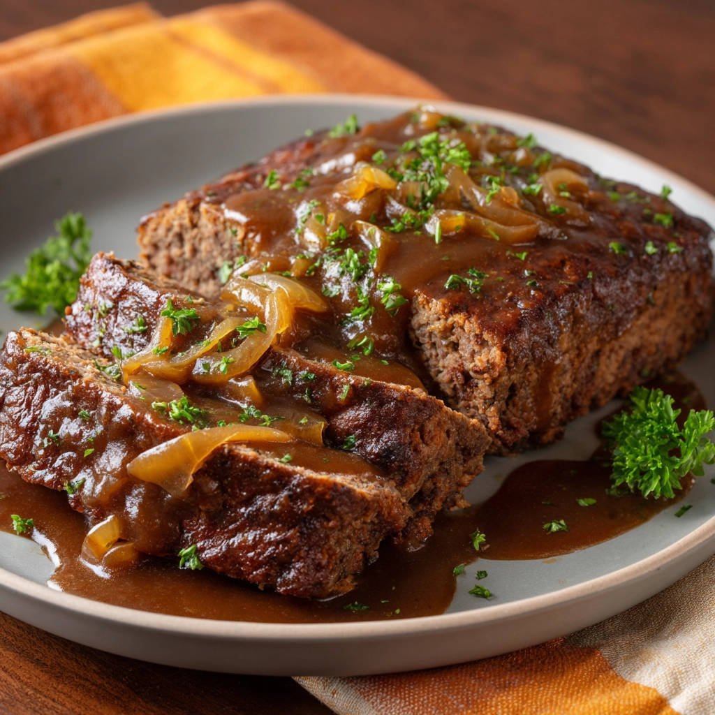 Dieser Hackbraten mit Zwiebelsoße ist ein echtes Soulfood-Gericht, perfekt für gemütliche Sonntage oder wenn Sie einfach etwas Richtiges auf den Tisch bringen wollen. Machen Sie sich bereit für saftigen Genuss!
