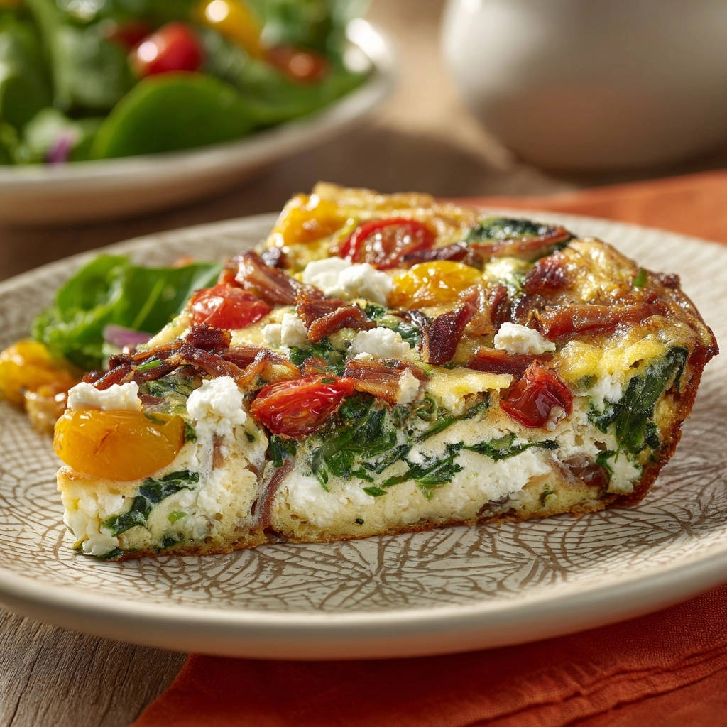 Herzhafte Spinat-Feta-Frittata mit knusprigem Bacon