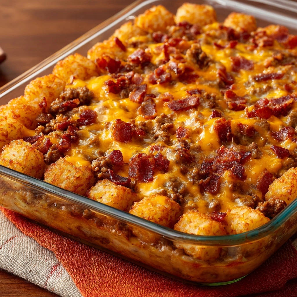 Die sämige, würzige Hackfleischsauce trifft auf perfekt goldbraun gebackene Tater Tots und sorgt für ein unvergleichliches Mundgefühl. Es ist ein Gericht, das gleichermaßen Kinder und Erwachsene begeistert und sich sowohl als schnelles Abendessen als auch als Highlight eines gemütlichen Beisammenseins eignet.