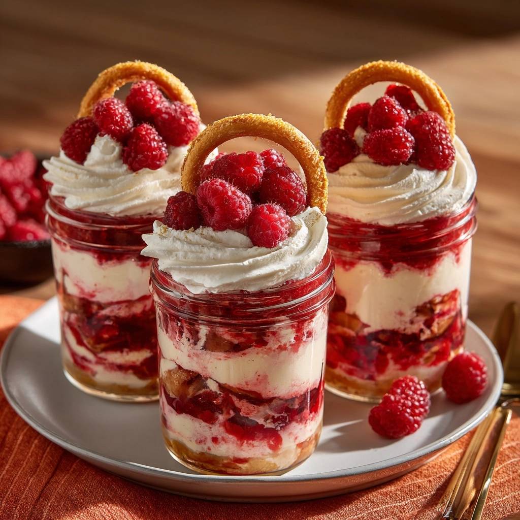 Stell dir vor, du löffelst das erste Mal in dieses Glas. Der Löffel knackt durch die goldbraunen Pretzelkrümel, die unter der saftigen Himbeerschicht knusprig warten. Dann die cremige Sahne, die alles umhüllt, und der fruchtige Biss, der explodiert. Himbeer-Pretzel-Traum im Glas – das ist purer Sommergenuss ohne den üblichen Frust.