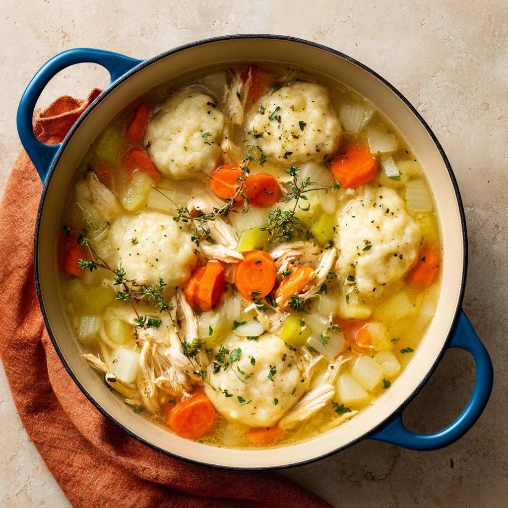 Stell dir vor, du hebst den Deckel vom Topf und ein warmer Thymianduft strömt dir entgegen. Der erste Löffel Hühnersuppe mit fluffigen Kräuterklößen schmilzt auf der Zunge: zartes Huhn, knackiges Gemüse und diese Klöße, die innen federleicht sind, außen weich, ohne jede Spur von Matsch.