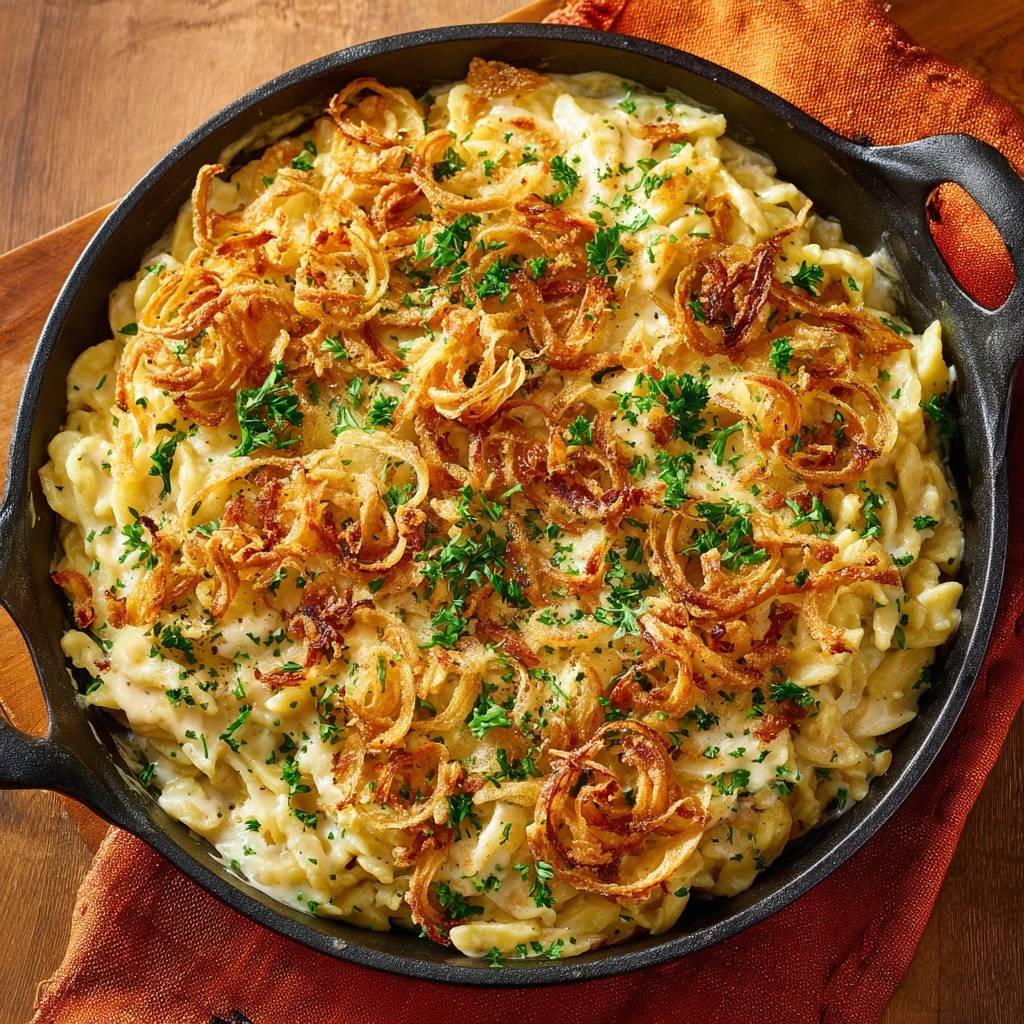 Absolut. Nimm veganen Käseersatz (z. B. auf Cashewbasis für Schmelzbarkeit), vegane Butter und Spätzle ohne Ei. Zwiebeln und Petersilie bleiben gleich. Der Trick hält: portionsweise braten. Ergebnis: cremig-knusprig, ohne Tierisches. Probiere mit Hefeflocken für Umami-Boost.