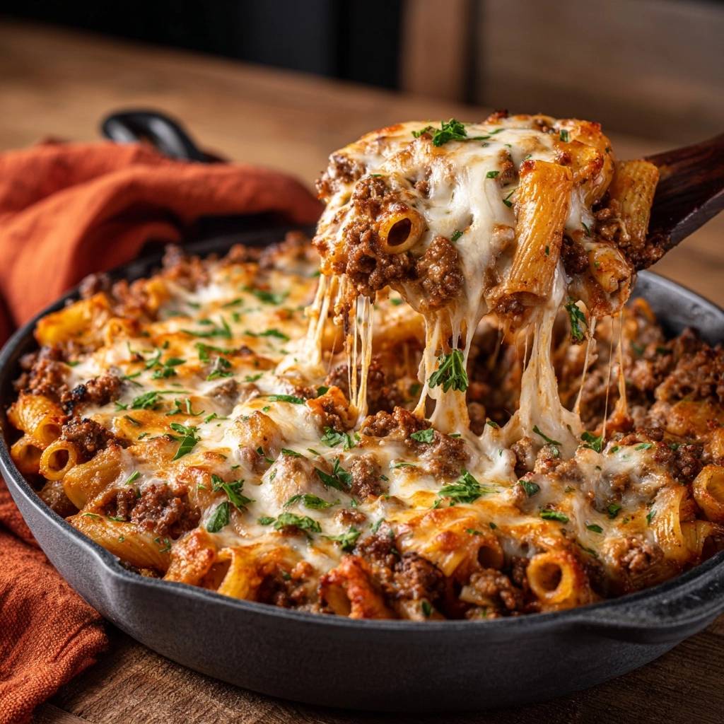 Stell dir vor, du öffnest den Ofen und da blubbert eine goldbraune Käsekruste auf saftigen Rigatoni mit Hackfleischsoße. Der erste Bissen knuspert, dann explodiert der Geschmack: bissfeste Nudeln, die die würzige Tomatensoße perfekt aufgesaugt haben, ohne je matschig zu werden. Das ist pure Pasta-Glückseligkeit.