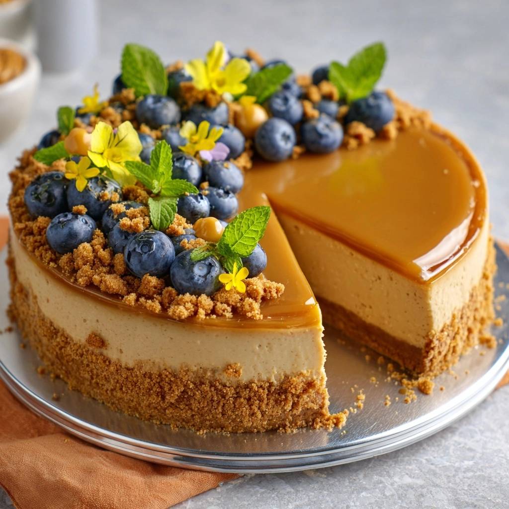 Karamell-Spiegel-Cheesecake mit Heidelbeeren – Rezept