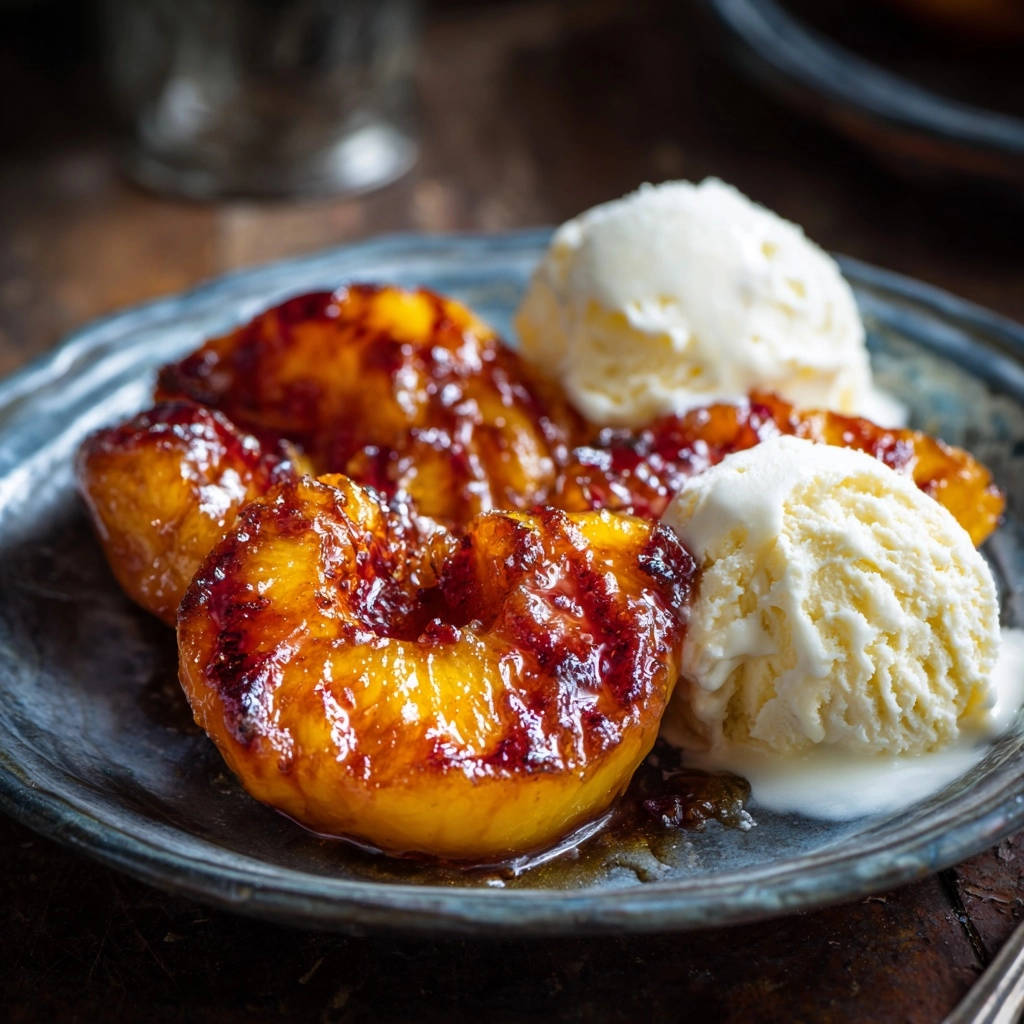 Karamellisierte Pfirsiche mit Vanilleeis: Einfach & Lecker