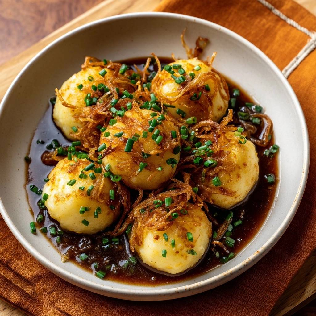 Kartoffelklöße mit knusprigen Zwiebeln – Rezept