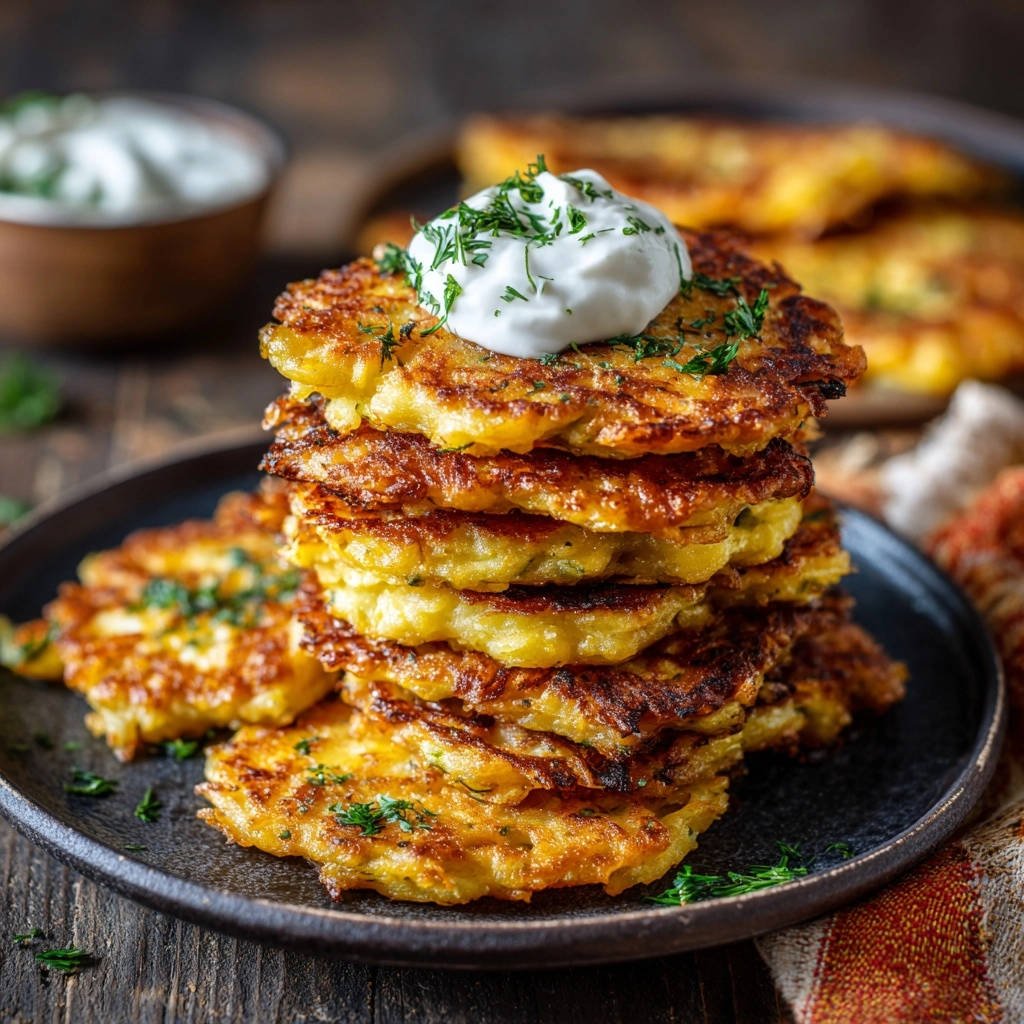 Servieren Sie die Kartoffelpuffer am besten sofort, solange sie noch warm und kross sind. Ein Klecks frischer Schmand oder saure Sahne bildet einen wunderbaren cremigen Kontrast zur Knusprigkeit.