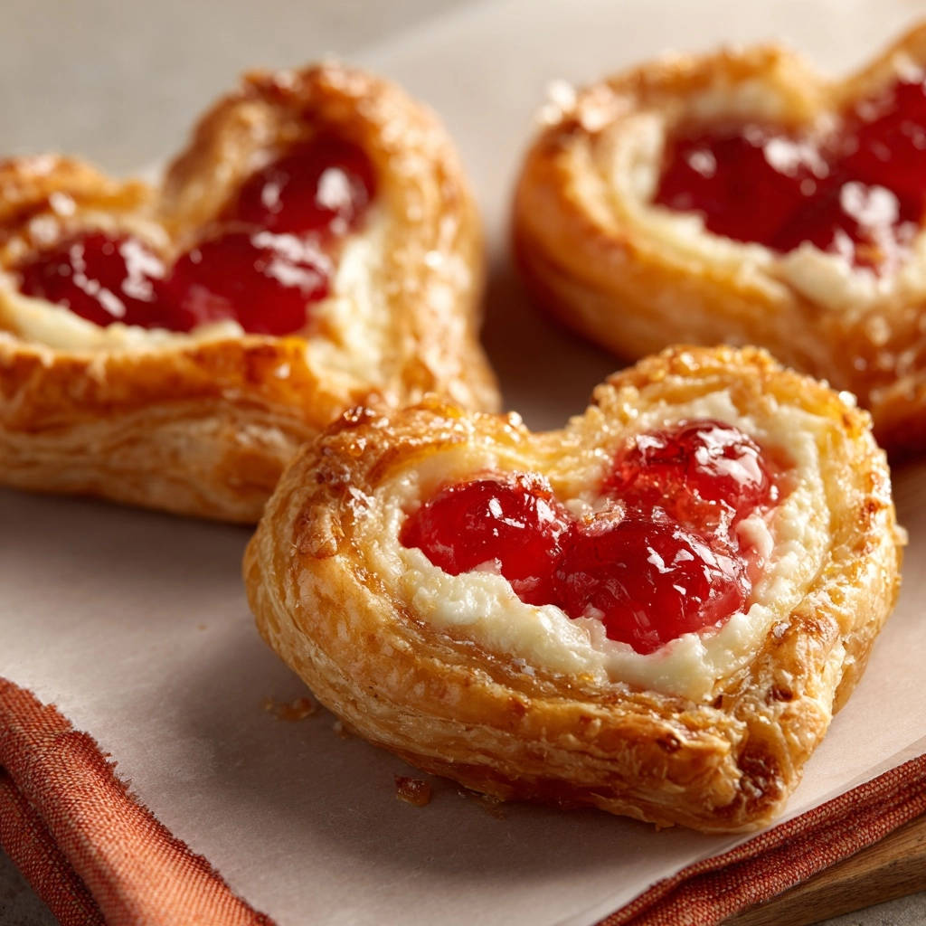 Kirsch-Plunder Herzen: So gelingt knuspriger Blätterteig