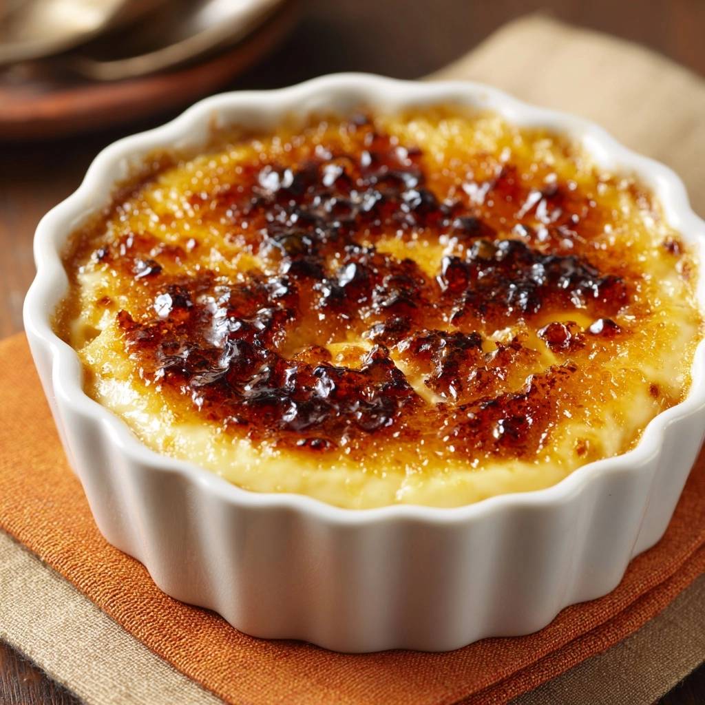 Stell dir vor, dein Löffel durchbricht mit einem hellen Knacken eine hauchdünne, bernsteinfarbene Zuckerschicht. Darunter wartet eine kühle, samtige Creme, die so zart auf der Zunge schmilzt, dass man für einen Moment alles um sich herum vergisst.