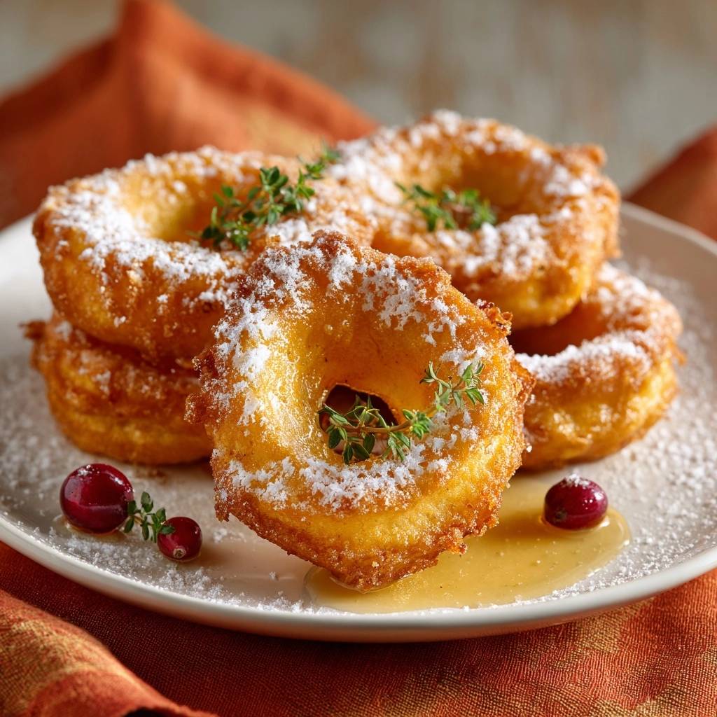 - Auf Küchenpapier abtropfen lassen, großzügig mit Puderzucker bestäuben. Mit Ahornsirup beträufeln, Cranberries und Thymianblättchen garnieren. Sofort servieren – himmlisch knusprig!