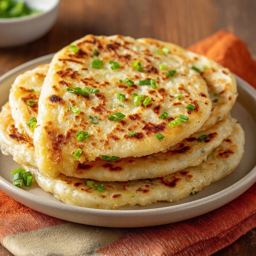 Der Duft von frischen Frühlingszwiebeln, die in heißem Öl brutzeln, zieht durch die Küche. Du beißt zu, und es knistert: außen goldbraun knusprig, innen schichtig und saftig. Diese knusprigen Frühlingszwiebel-Pfannkuchen sind so ein Genuss, dass du sie kaum abwarten kannst.