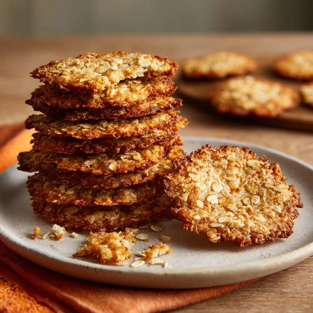 Stell dir vor, du hebst den ersten knusprigen Haferkeks zum Mund. Der goldene Rand knackt leise, innen zart-oaty und zimtig. Der Duft steigt auf, warm und einladend, perfekt zum Kaffee.