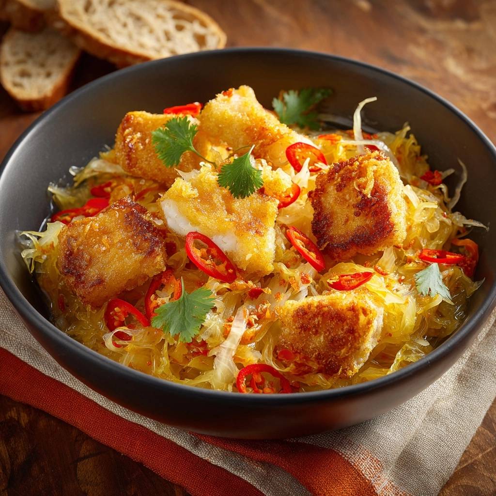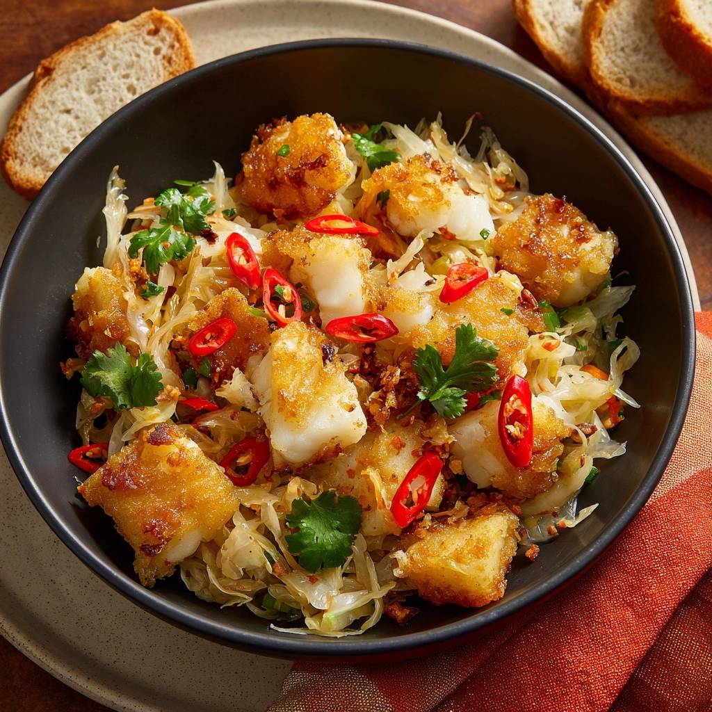 Knusprige Kabeljau-Bites auf Chili-Kohl: Perfekt & stabil