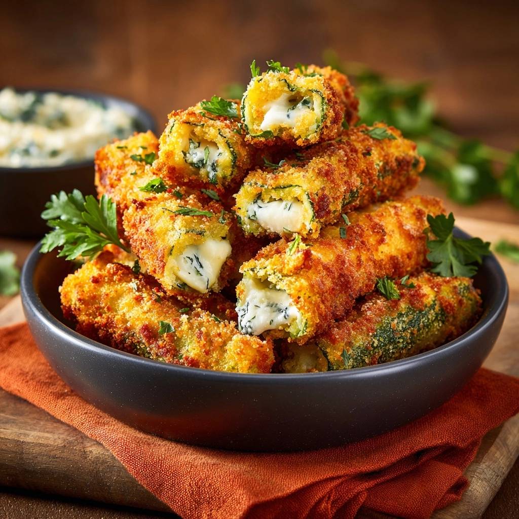 Stell dir vor, du beißt in einen dieser goldenen Sticks. Draußen knackt die Panade, drinnen schmilzt der Käse wie ein warmer Gruß. Der Duft von frischer Petersilie mischt sich mit dem Aroma gebratener Zucchini, und alles ist so saftig, ohne auch nur einen Hauch Matsch.