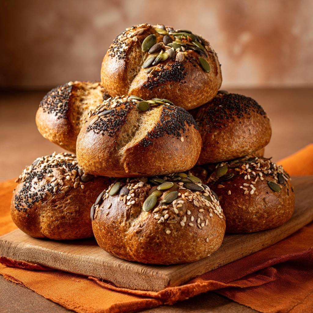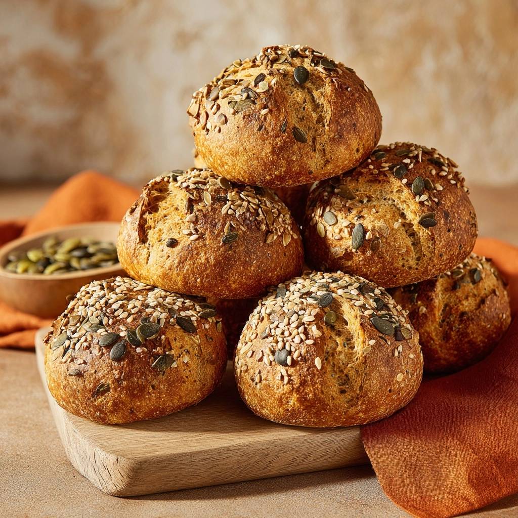 Stell dir vor, du beißt in ein Brötchen, das außen knusprig knackt und innen weich und fluffig schmilzt. Der Duft von gerösteten Kürbiskernen mischt sich mit frischem Brot, und jeder Bissen fühlt sich wie ein kleiner Sieg an.