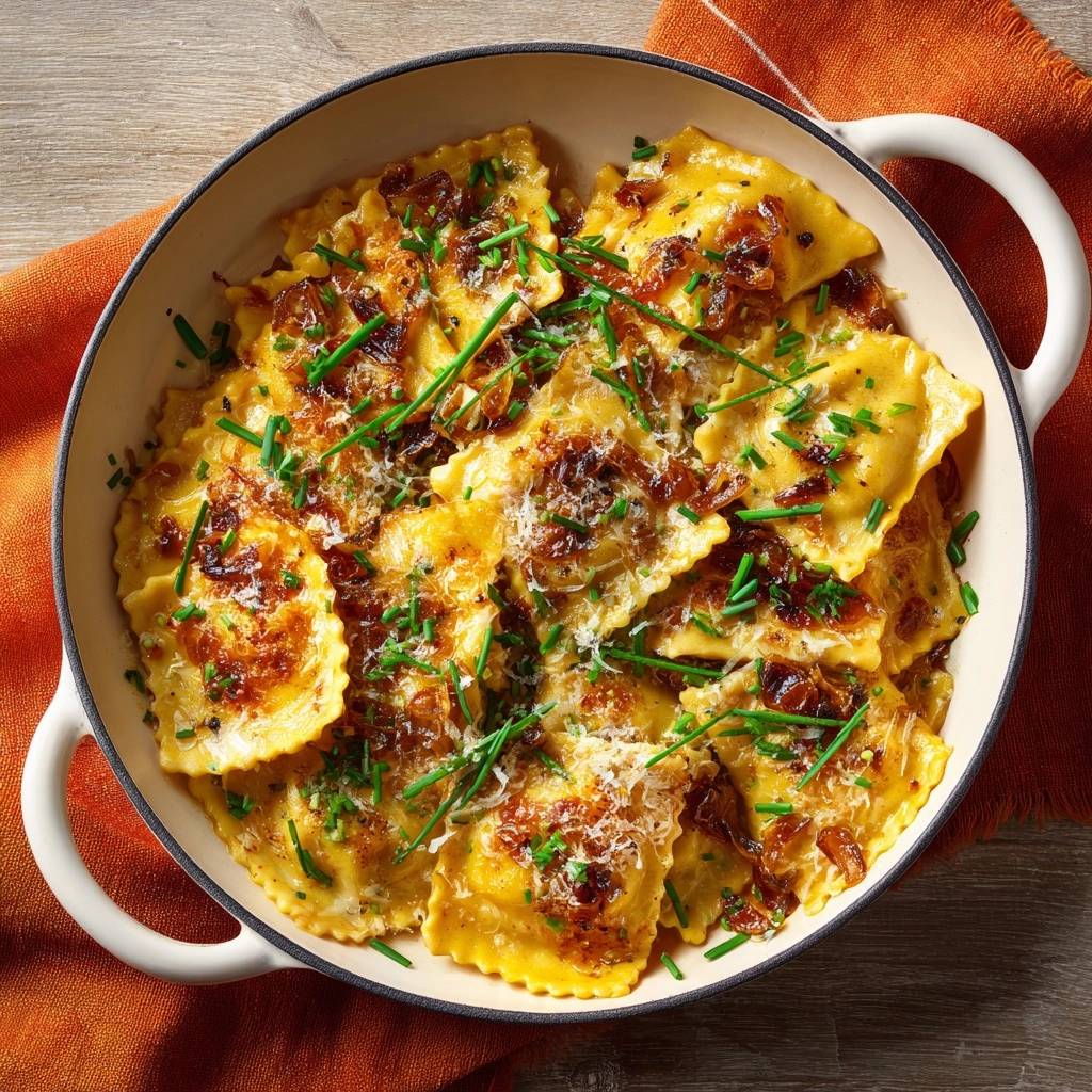 Knusprige Ofen-Ravioli mit Karamellzwiebeln drehen das Übliche um. Statt weichgekocht werden sie direkt gebacken. Das ergibt perfekte Textur: Außen hart, innen al dente.