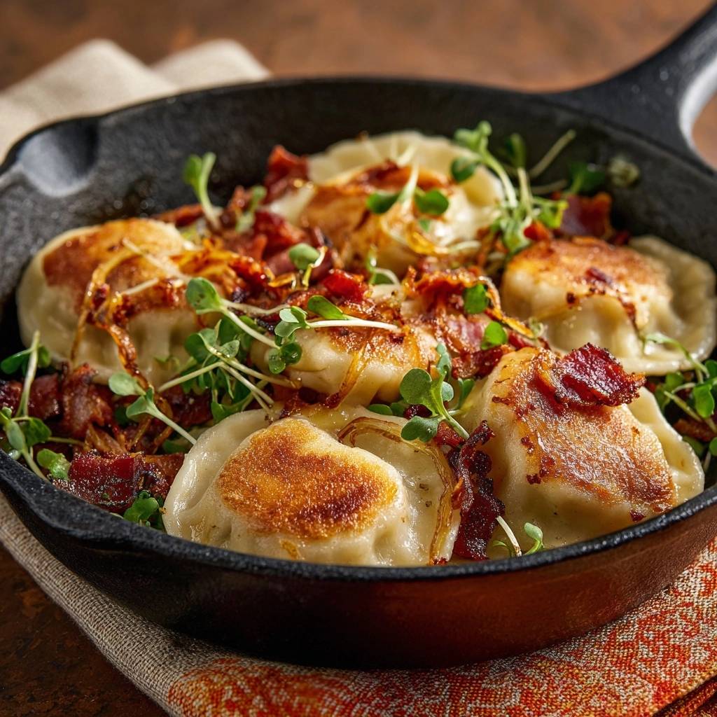 Knusprige Pfannen-Pierogi mit Speck und Zwiebeln