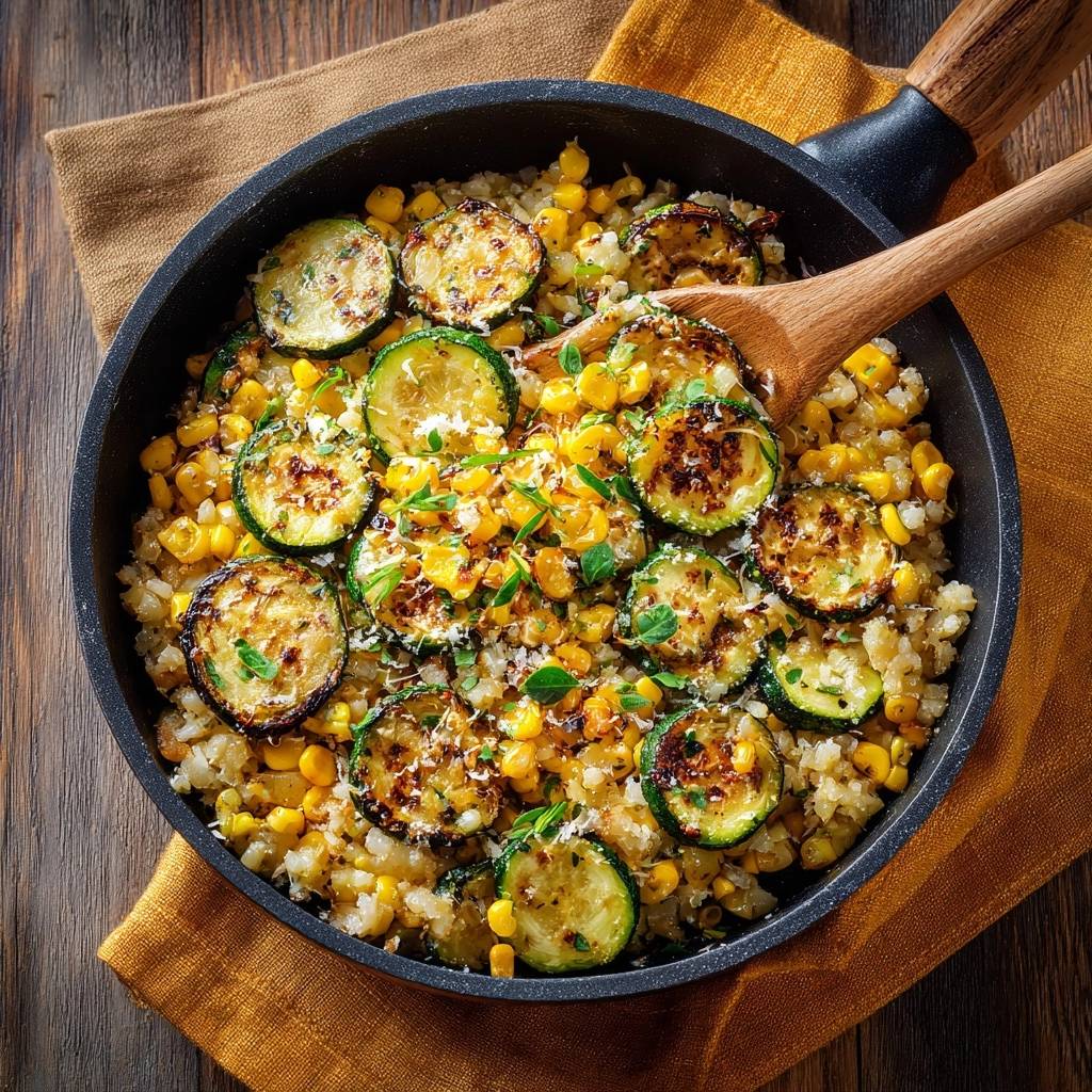 Knuspriger Blumenkohlreis mit Zucchini und Mais – Low-Carb Rezept