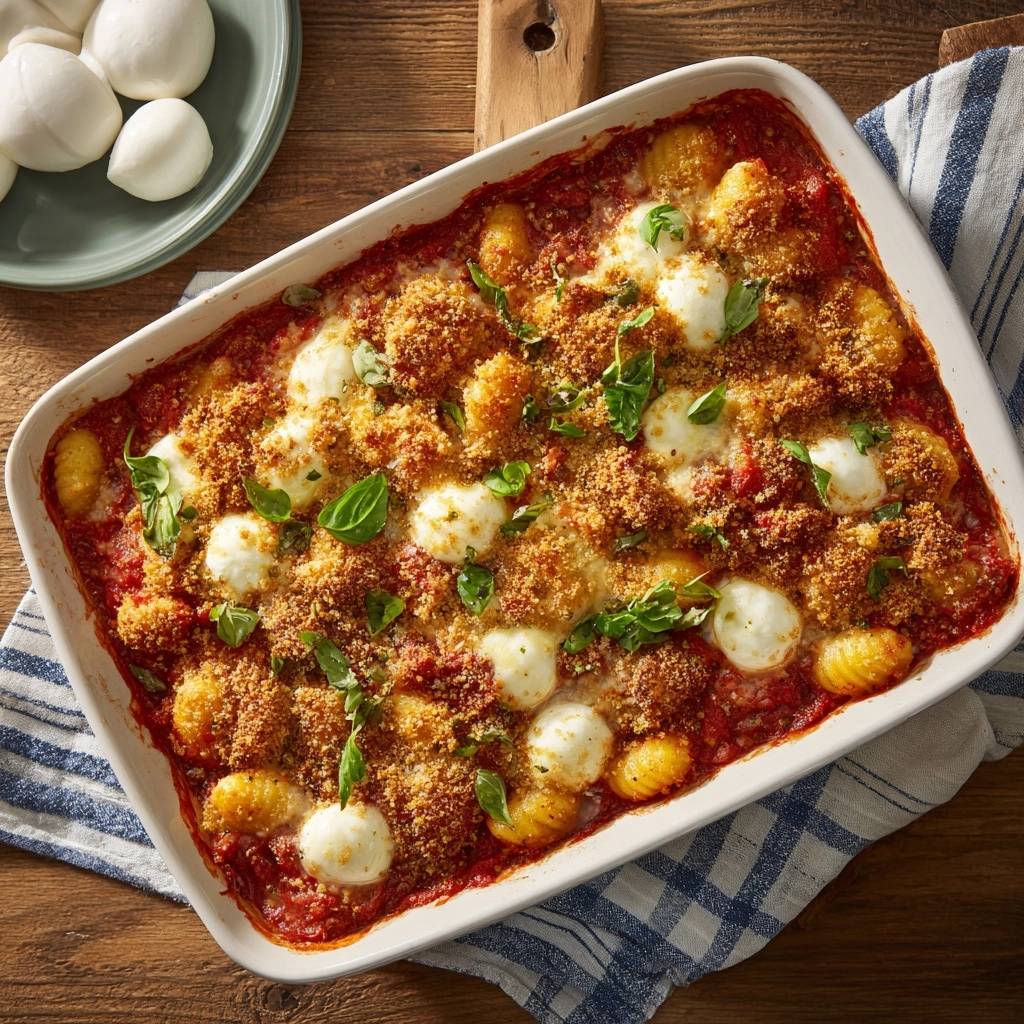 Knuspriger Gnocchi-Tomatenauflauf mit Mozzarella