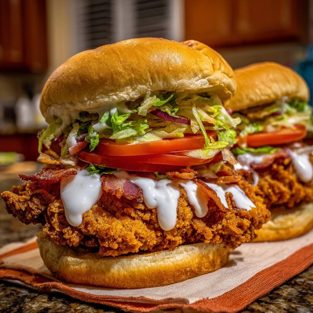 Stell dir vor, du beißt herzhaft in diesen Knuspriger Hähnchen-Bacon-Burger. Die Panade knackt laut, das Hähnchenfleisch ist saftig und zart, während rauchiger Putenbacon und frischer Salat im Mund explodieren. Dazu die cremige Ranch-Sauce, die alles rund macht. Ein Traum!