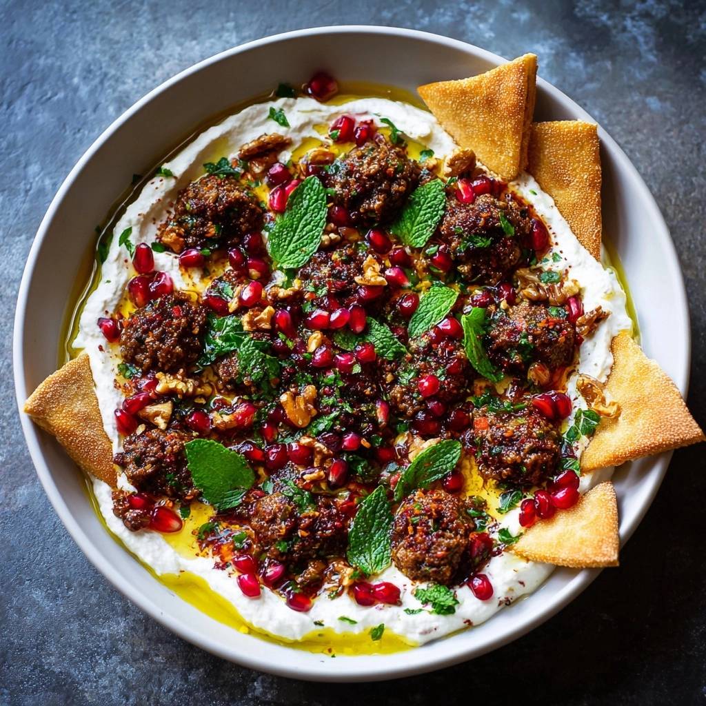 Stell dir vor, du schaufelst den ersten Löffel dieses Dips auf dein Pita-Brot. Die cremige Labneh-Basis umhüllt das knusprig-krümelige Hackfleisch, Granatapfelkerne knistern süß-säuerlich dazwischen, und Walnüsse bringen Biss. Ein Bissen, und du bist im Orient angekommen – saftig, würzig, unwiderstehlich.